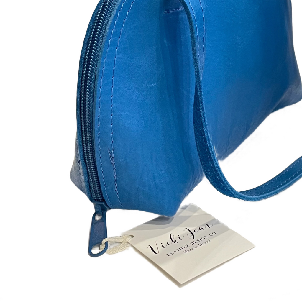 NEW! XL Rainbow DJ Leather Crossbody Bag in Blue by Vicki Jean Leather Design Co.