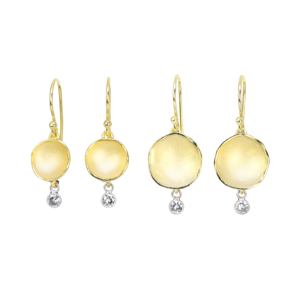 Small Dishy Hook Earrings with White Zircon by Sarah Richardson