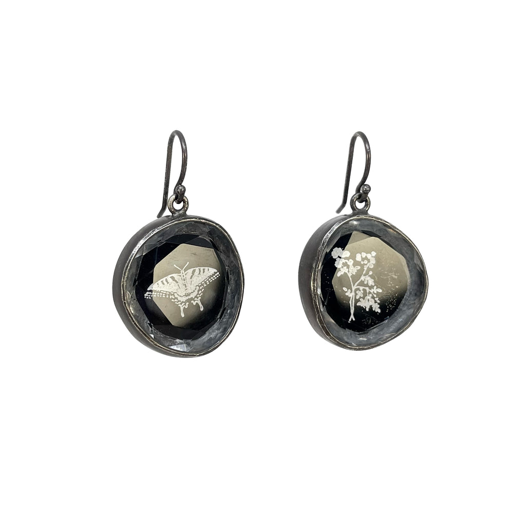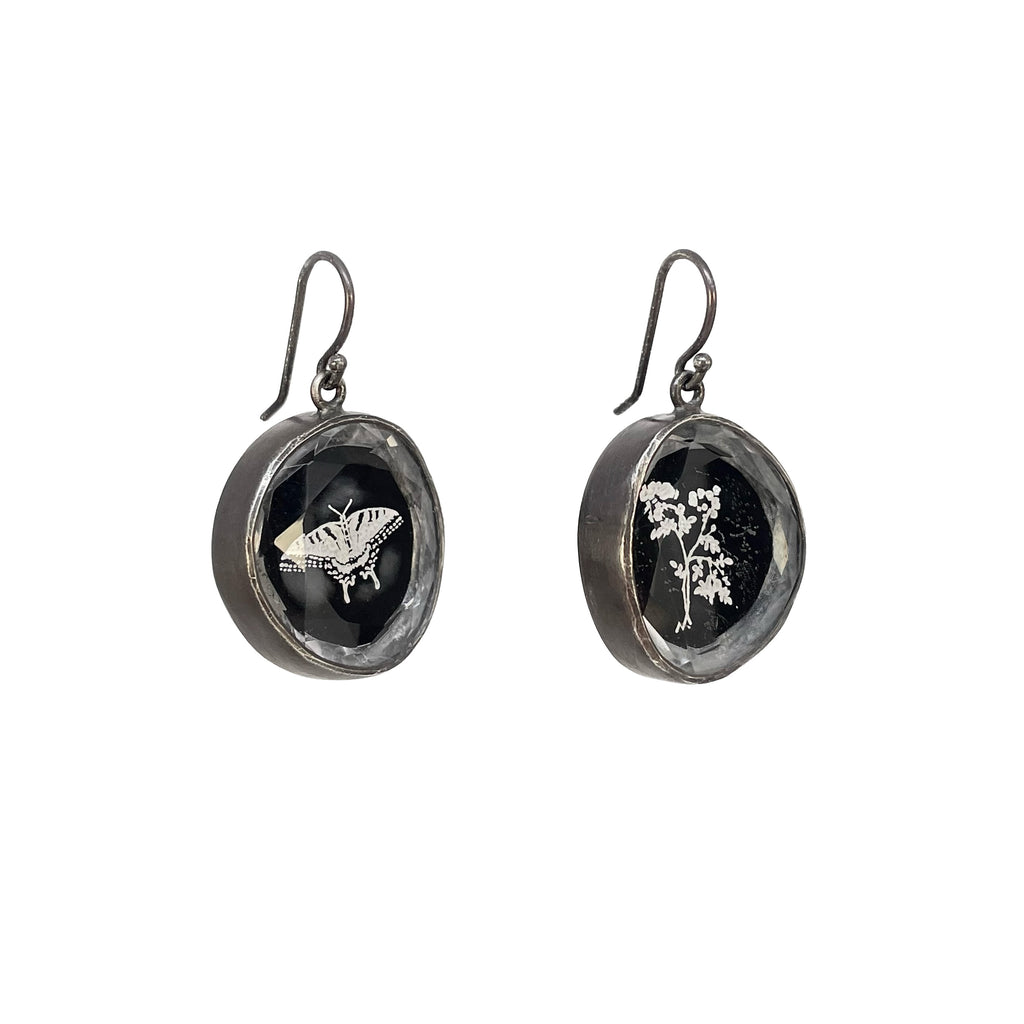 NEW! Wildflowers & Butterfly on Quartz over Black Onyx Earrings by Kelly Jean Conroy