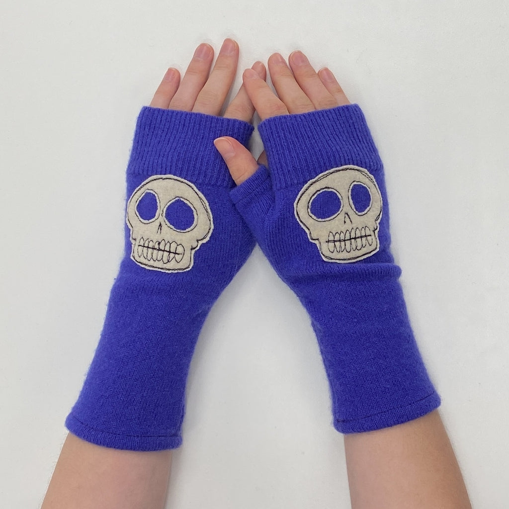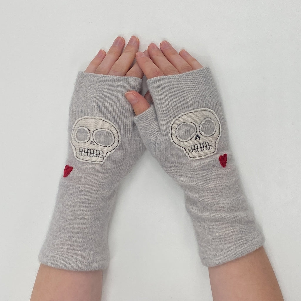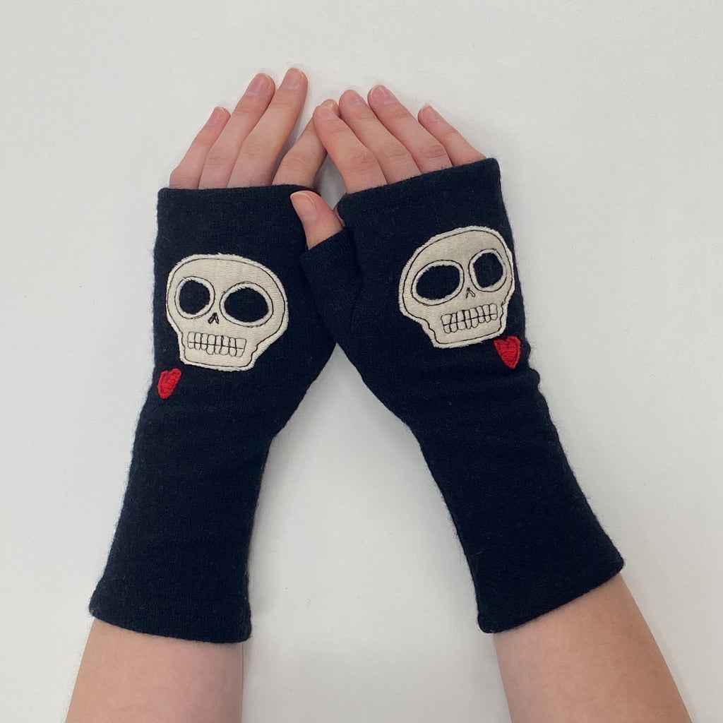 NEW! Cashmere Fingerless Gloves with Skulls by Sardine Clothing