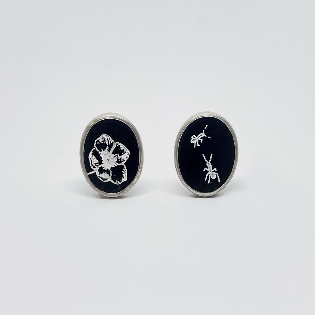 Petunia and Ants on Recon Black Onyx Stud Earrings by Kelly Jean Conroy