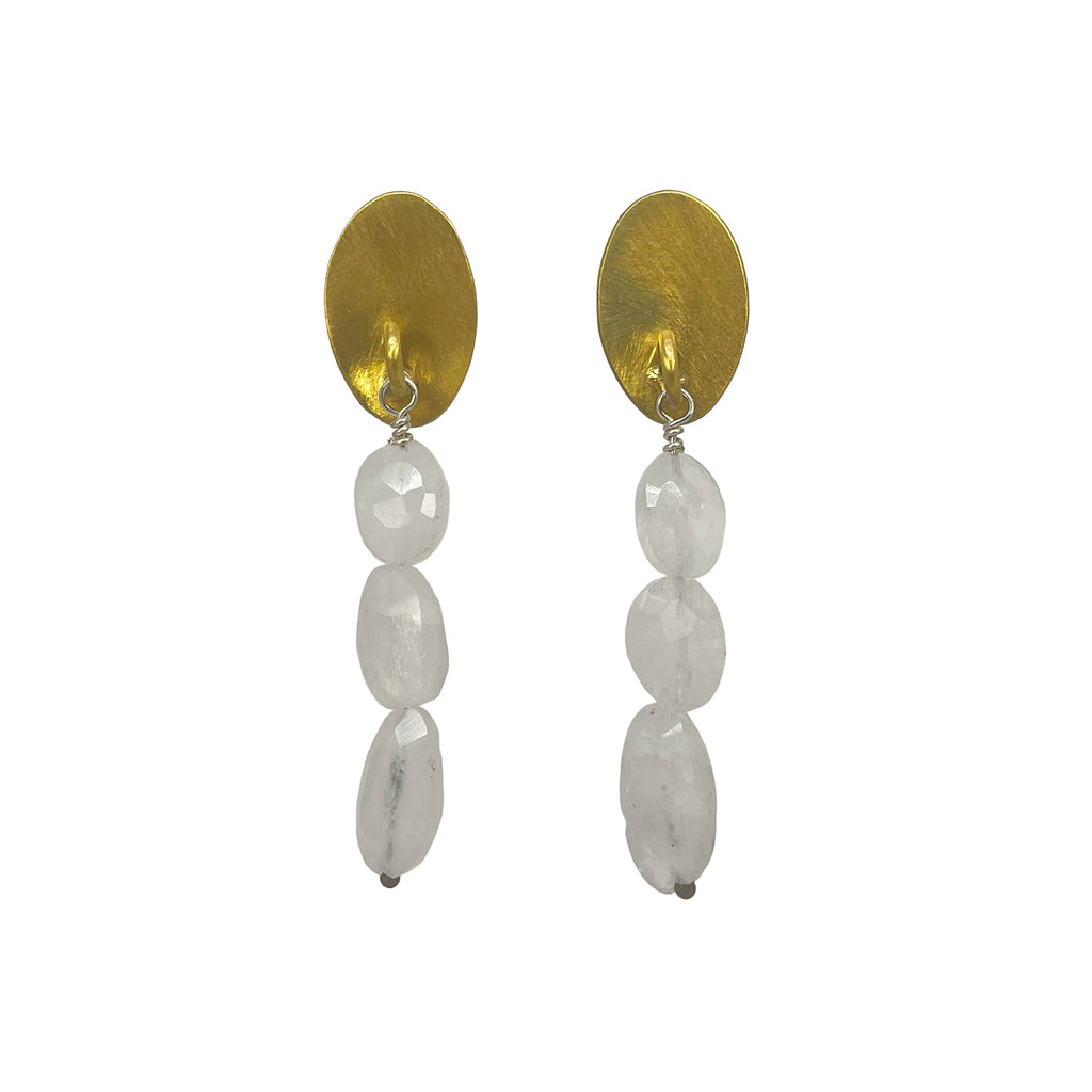NEW! Brass Oval Post Earrings w/ Stones by Eric Silva