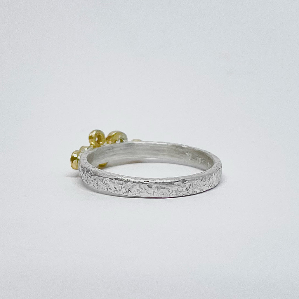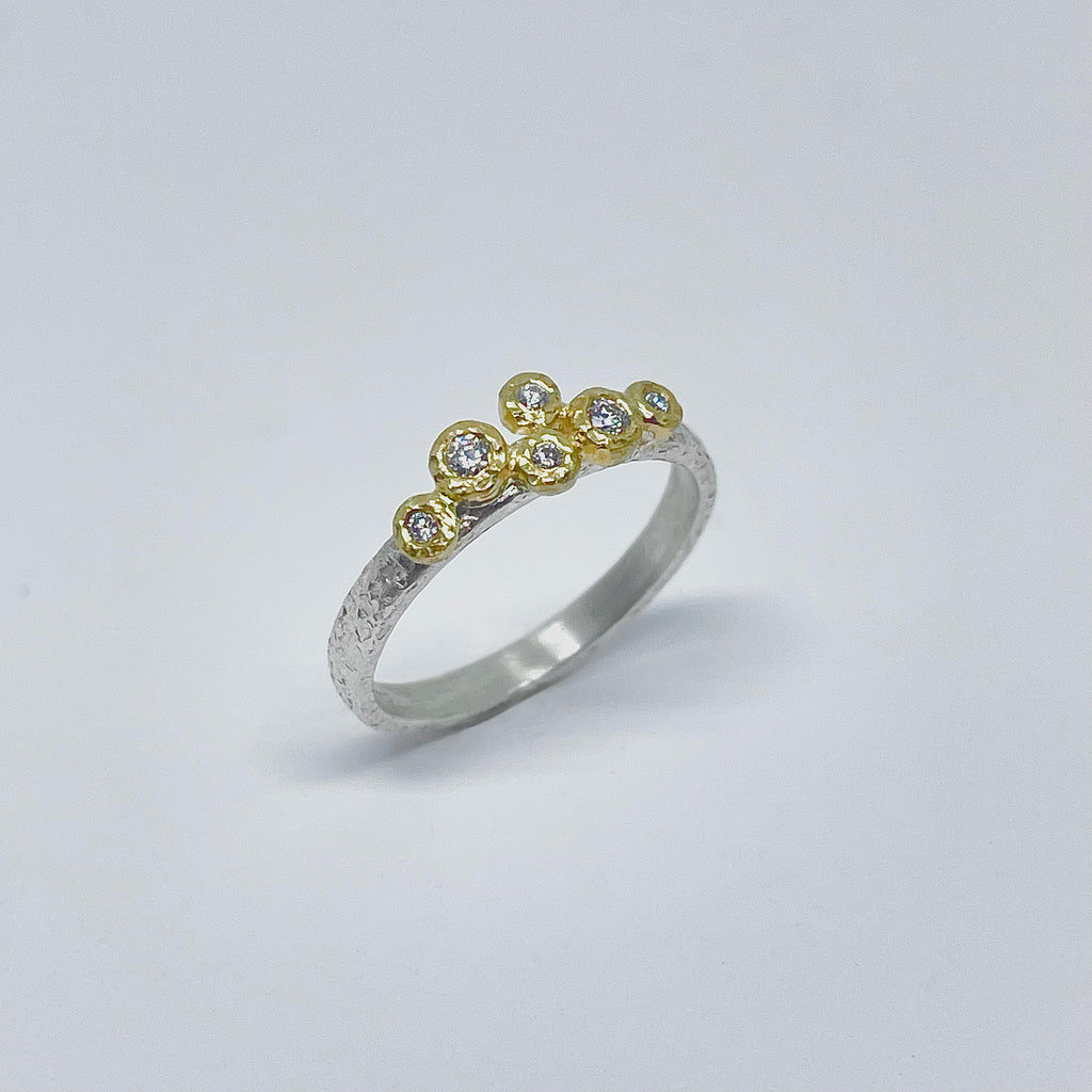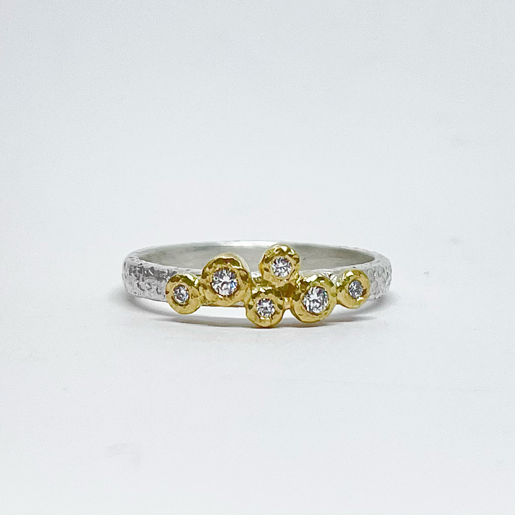 NEW! 6 Diamond in 18k Gold Bezel on Silver Ring by Yasuko Azuma