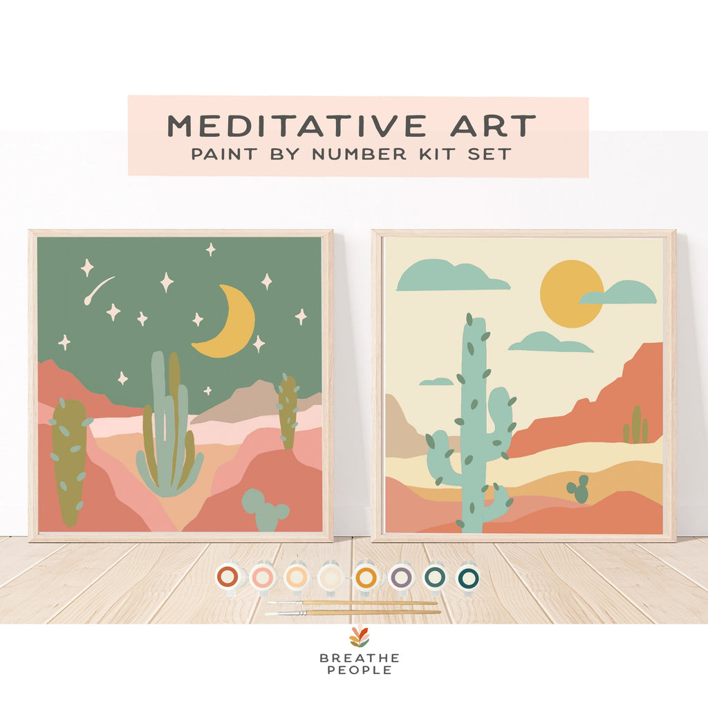 NEW! Zen Desert Meditative Art Paint by Numbers Kit + Easel by Breathe People