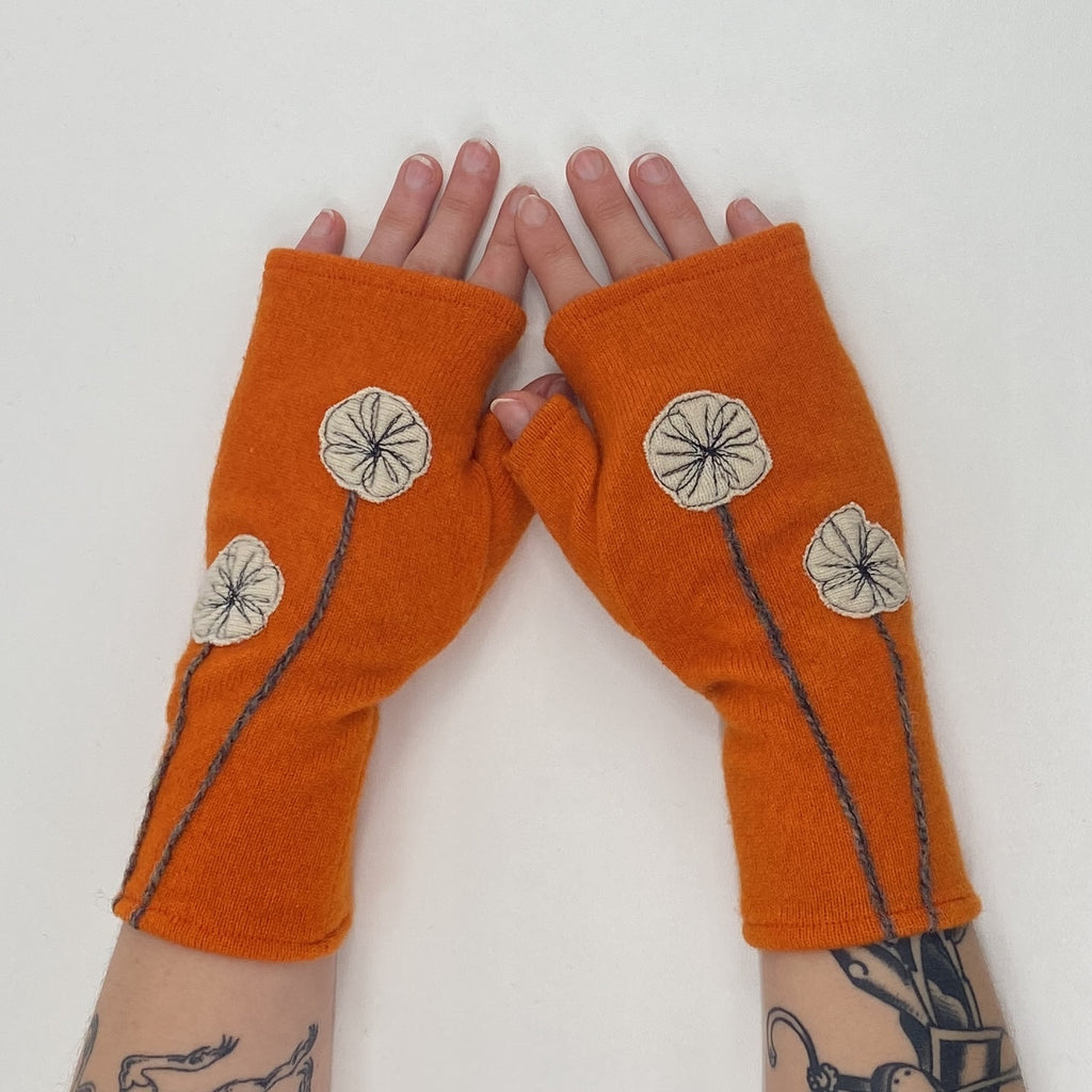 NEW! Cashmere Fingerless Gloves with Cherry Blossoms by Sardine Clothing