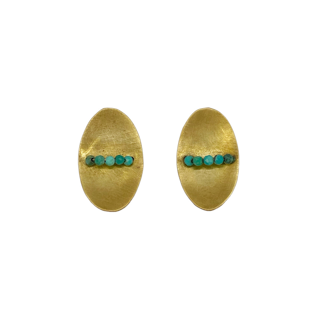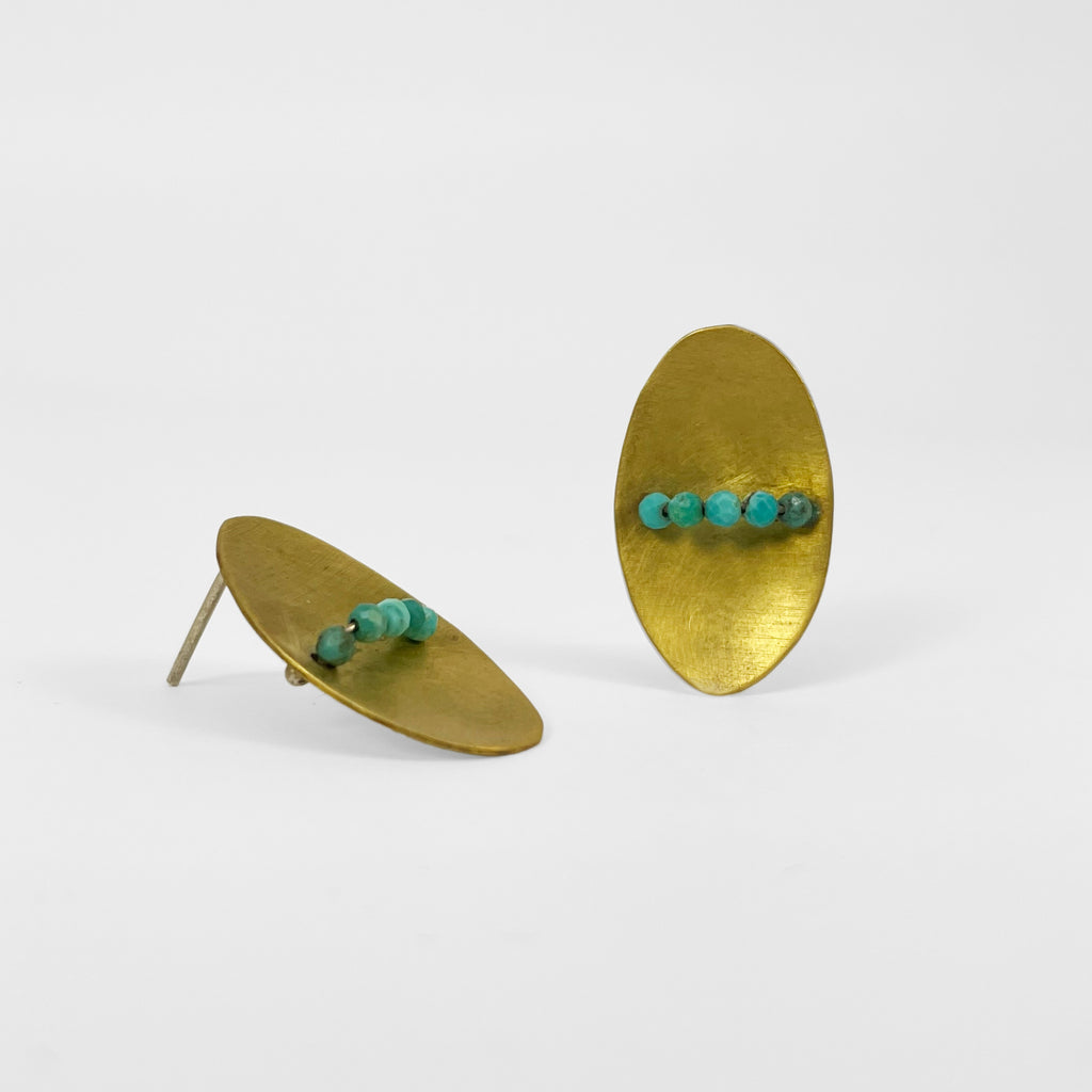 NEW! Thin Brass Oval with Turquoise Beads on Post Earrings by Eric Silva