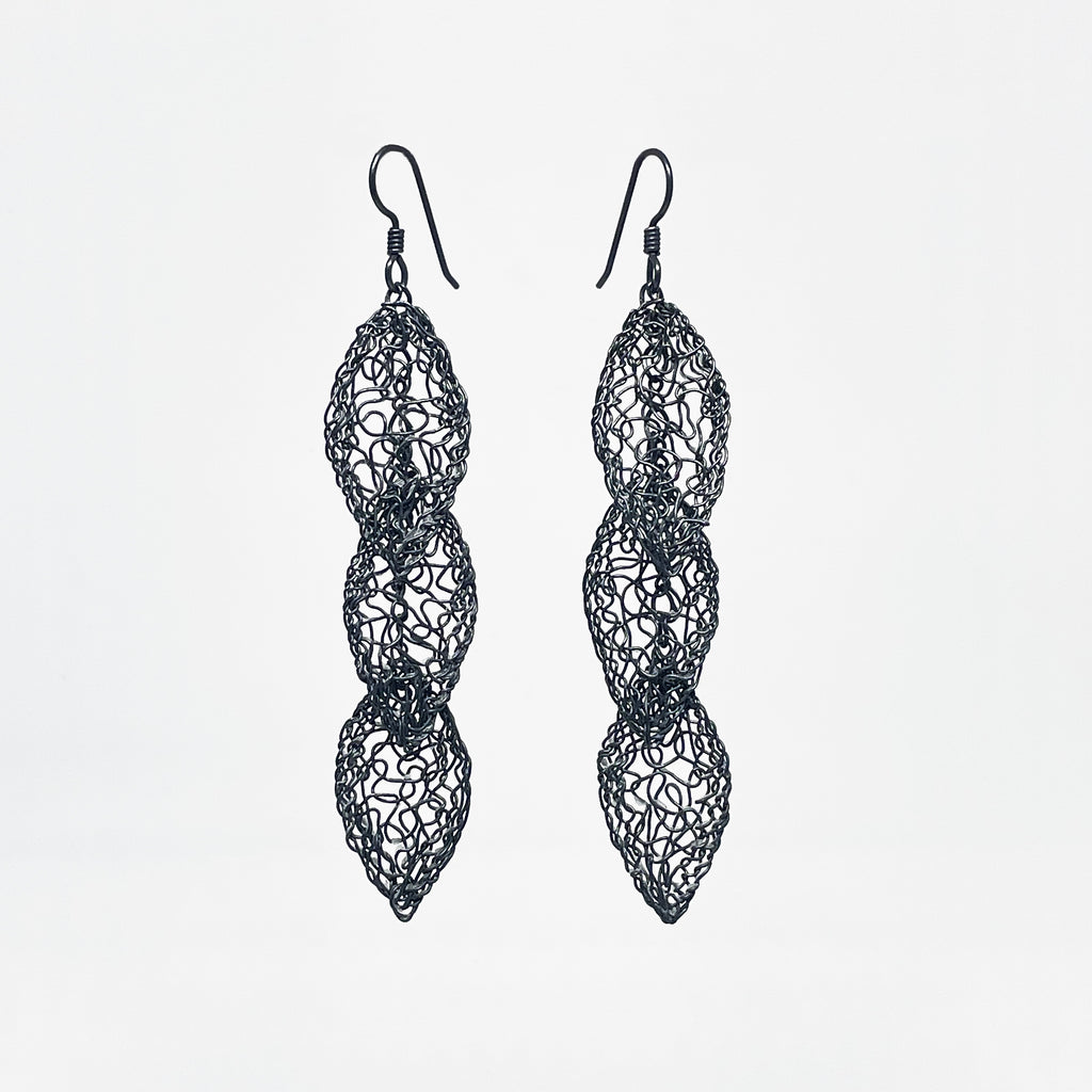 NEW! Three Leaves Dangle Oxidized Sterling Silver Earrings by MetaLace Jewelry