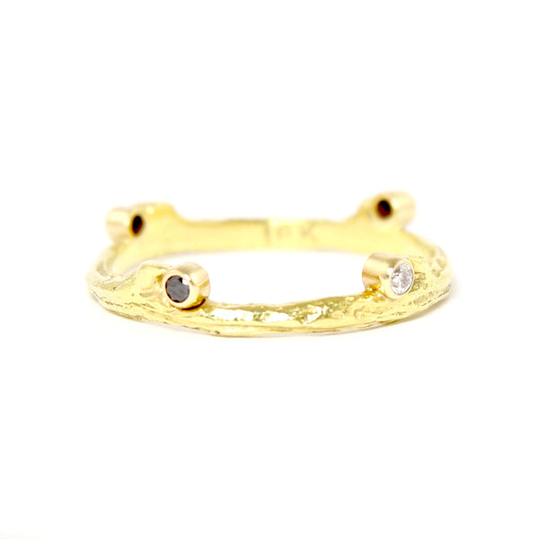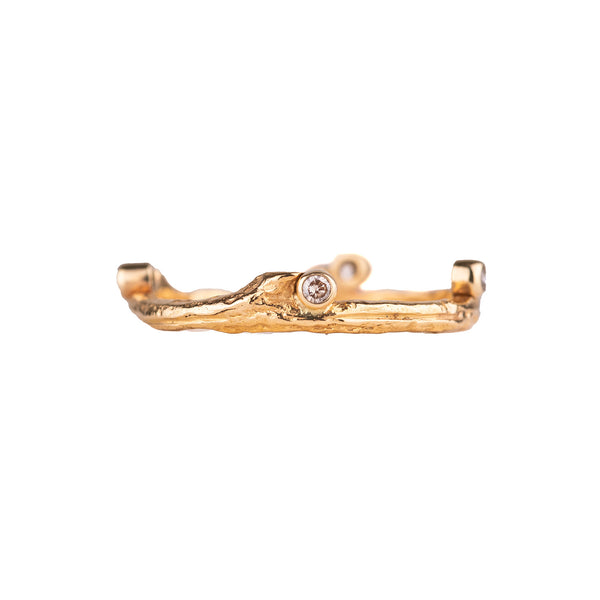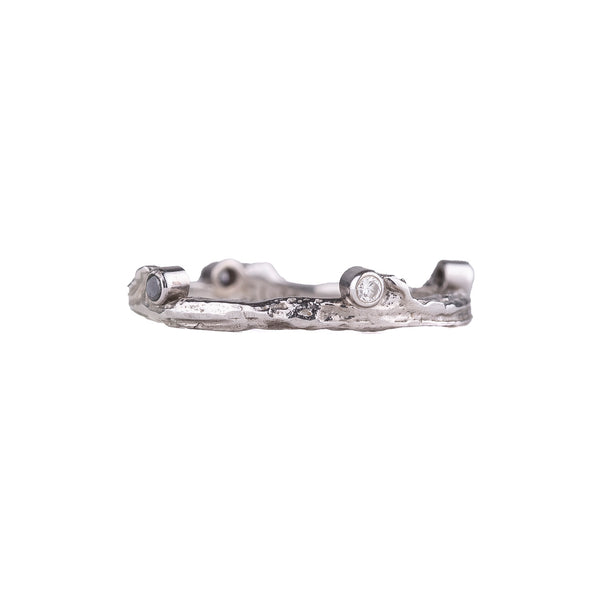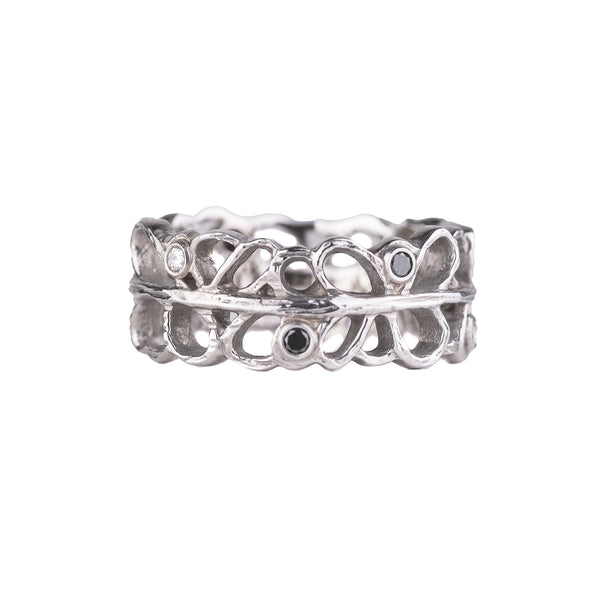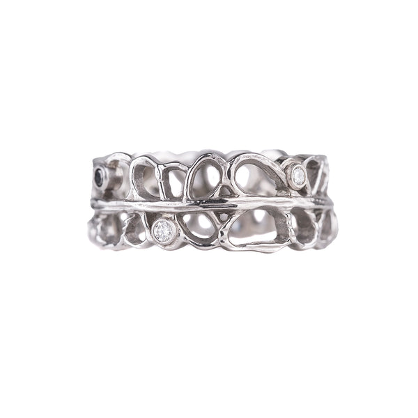 By incorporating innovative materials with her exceptional design sense, Sarah Graham creates jewelry that is unlike anything else; organic, textural, with a muted palate that is subtly feminine, yet substantial; unique, yet universal in its appeal. The natural inspiration behind the jewelry - whether cast directly from Jacaranda Pods and decayed wood or rendered in wax from a microscopic view of single cell marine organisms - gives Sarah Graham's designs a texture and feel that makes them infinitely wearable. But it is the matte black finish of oxidized cobalt chrome juxtaposed with 18k yellow, rose and white gold, set with colored diamonds, that is its most eye-catching element.