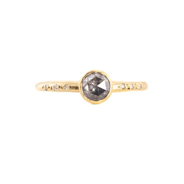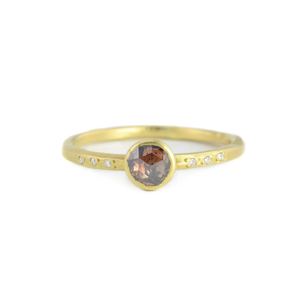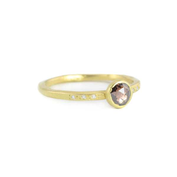 From her timber-loft studio, the designer and a small team craft each piece of jewelry by hand. Sarah uses recycled metal – primarily high-karat gold and sterling – mixing it with linen, leather, rough gemstones and diamonds.